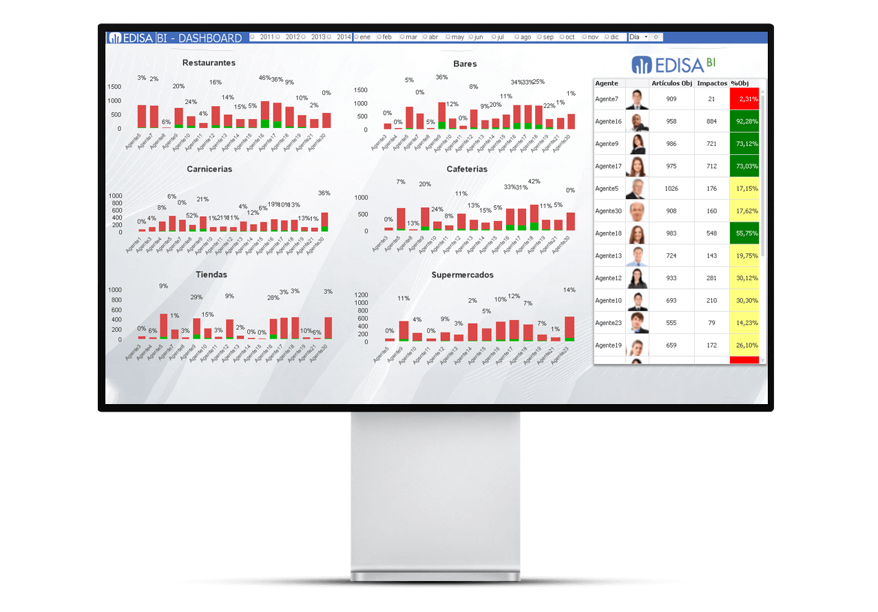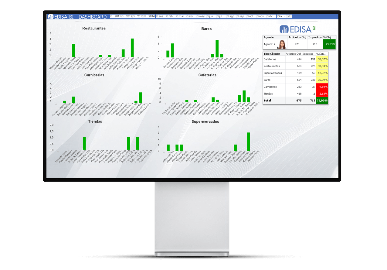 - Alta flexibilidad en la configuración de los informes (listados y gráficos del cuadro de mando)