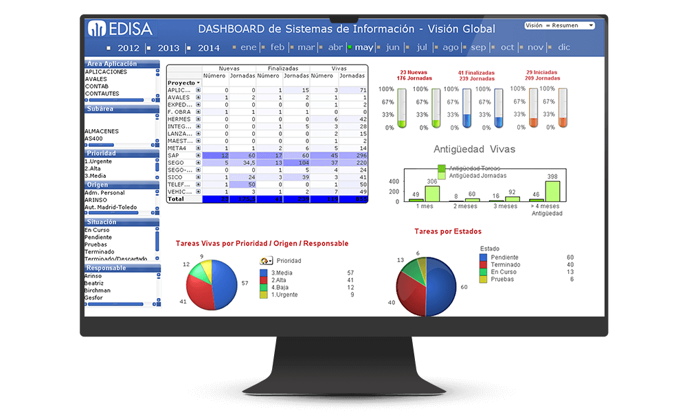 - Seguimiento de las tareas e incidencias de las Aplicaciones Corporativas
