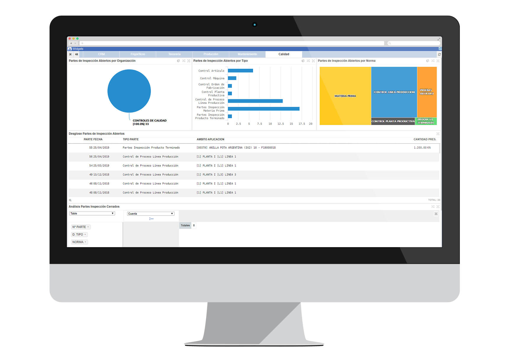 • Visualization in other modules of the results obtained in the product / process controls.