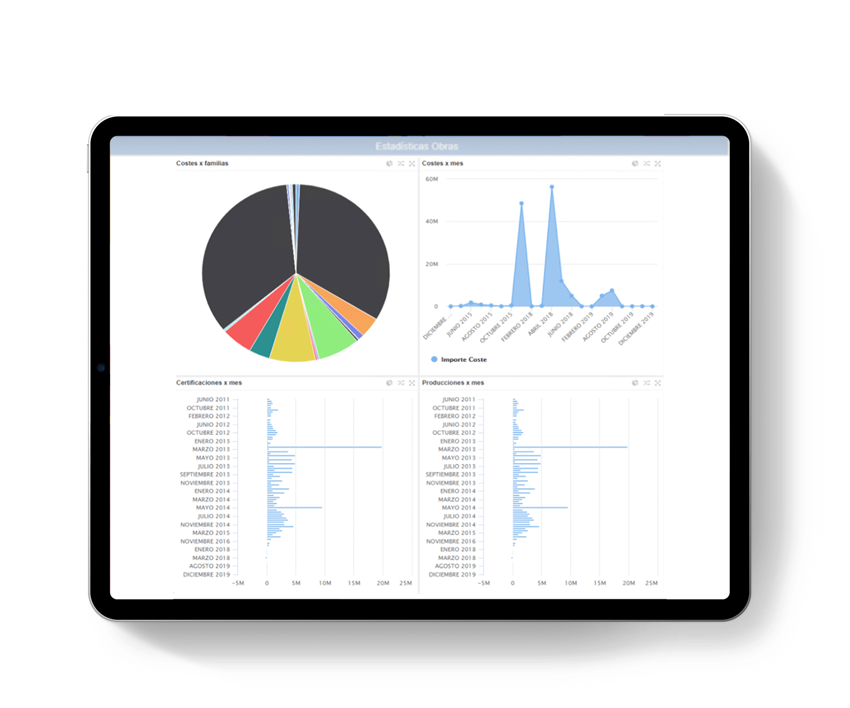 En el caso particular del sector de la construcción, el módulo aporta un soporte completo a la fase comercial (promoción inmobiliaria) y a la de construcción y gestión de la obra (presupuestación, control de ejecución temporal y económico, certificación y producción).